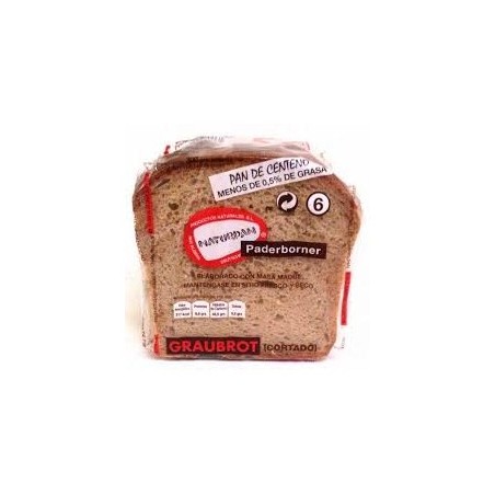 Pan gris de centeno elaborado a la manera westfaliana, aromatizado y elevado con masa madre . Menos de 0,5% de grasa