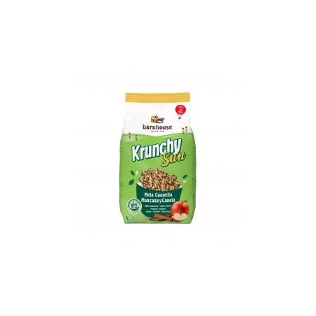 El Muesli krunchy manzana y canela barnhouse de Biocop es un cereal que contiene copos de avena integral, azúcar de caña, copos de trigo integral, arroz crujiente de arroz, cebada malteada, sal marina, manzanas desecadas, pasas sultanas, sirope de manzana y canela. Estos ingredientes son de origen ecológico y es apto para dietas veganas o vegetarianas por su origen ecológico.