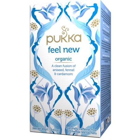 Feel New Herbal Tea de Pukka es lo último en cuanto a limpieza y desintoxicación del cuerpo. ¡Este té orgánico lo tiene todo para drenar todo el material nocivo de tu cuerpo y hacerte sentir mucho más sano, ligero y lleno de energía!