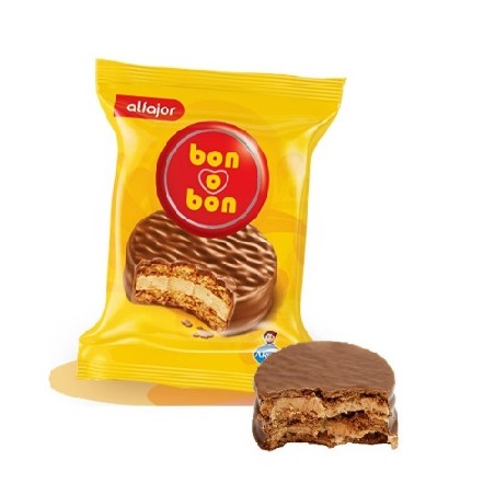 Alfajor relleno a base de leche y maní cubierto con chocolate con leche. Todos los productos se venden en caja cerrada. Presentación: Caja por 40 unidades.