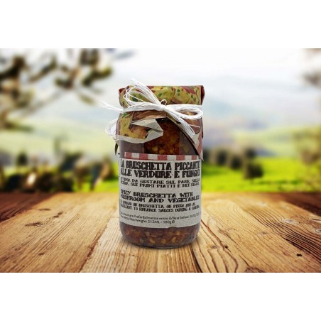 Sabrosa mezcla de verduras con champiñones y pimiento picante, para disfrutar en pan, pizza, primeros platos y salsas