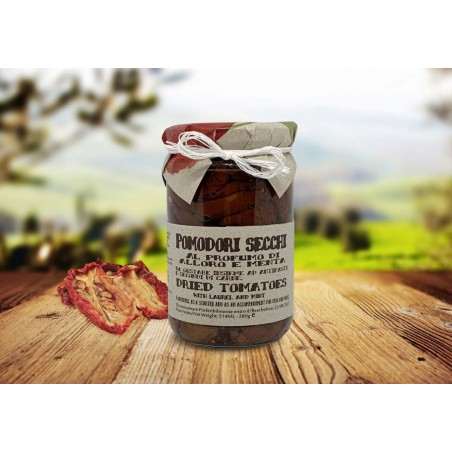 Ingredientes : 85% de tomates secos, aceite de oliva virgen extra, aceite de girasol (en proporciones variables), laurel, menta, ajo, vinagre de vino, sal, sabores naturales