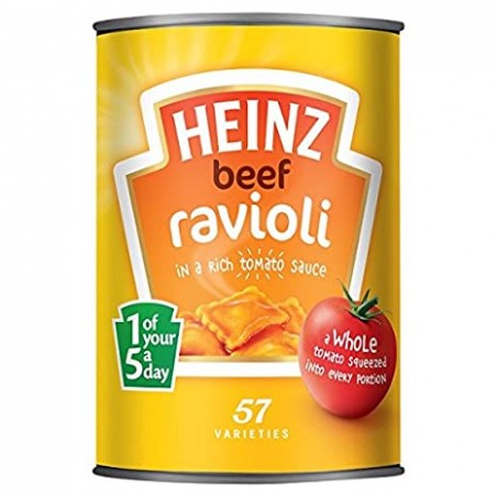 Heinz Ravioli in Tomato Sauce is made with pasta in classic tomato sauce. Heinz Ravioli in tomato sauce is just what you need if you are looking for a quick, filling and tasty meal! Made with delicious juicy tomatoes. Shipped world wide including Europe, US, Asia, South America, Africa and Australia.