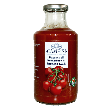 La Pachino Tomato PGI Passata está hecha con passata fresca de tomate maduro de la parte sureste de Sicilia y sal.