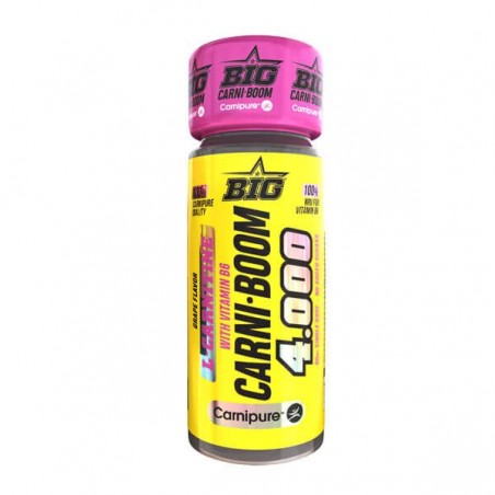 Carniboom 4000 de BIG®, monodosis de 60ml de carnitina con vitamina B6, formulado con la prestigiosa patente Carnipure® y en una de las más altas dosis del mercado, con 4000mg de carnitina por toma.