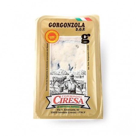 El Gorgonzola Dolce D.O.P es uno de los quesos italianos más conocidos en el mundo. Es un queso de leche de vaca de pasta suave, cremosa y algo mantecosa, de color blanco pajizo, pintado por vetas de moho gris-verde, llamadas “erborinatura”. Estas vetas se deben a la presencia de moho natural, benéfico para la salud de las personas, que se desarrolla durante el período de maturación. Su aspecto externo presenta una costra rugosa. Presenta al paladar un sabor intenso, dulce e inconfundible y tiene un aroma quizás más fuerte que su sabor. Su maduración es de 50 días, obteniendo, de esta manera, un sabor más genuino y natural.