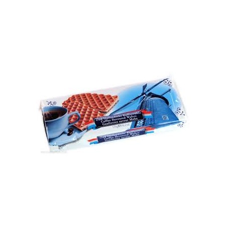 Perfectamente crujiente por fuera, con un relleno delicioso y rico de nata con sabor a café en el centro. Nuestras obleas de café se hornean según la receta original y artesanal por una panadería familiar fundada en 1953.