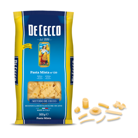 De Cecco, de forma innovadora en el mercado de la pasta, ha estudiado una Pasta Mixta con hasta 10 variedades cortas y largas, acercándose aún más a la tradición regional.
