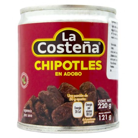 Chile Chipotle Adobados de la marca La Costeña, tiene un gran sabor ahumado y un poco dulce, con solo un poco podrás darle a tus comidas un gran toque de sabor