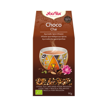 Una deliciosa y tierna mezcla de especias de chai tradicional y cáscara de cacao. YOGI TEA® Choco Té ha sido de los favoritos durante años. El cacao se une con el regaliz dulce, la canela, el jengibre picante y el cardamomo en una mezcla celestial. Siéntate, toma un sorbo y disfruta del maravilloso aroma del chocolate. La mejor forma de tomarlo es endulzado y con un poco de leche, animal o vegetal. La esencia de esta infusión es: “Deliciosa indulgencia”.
